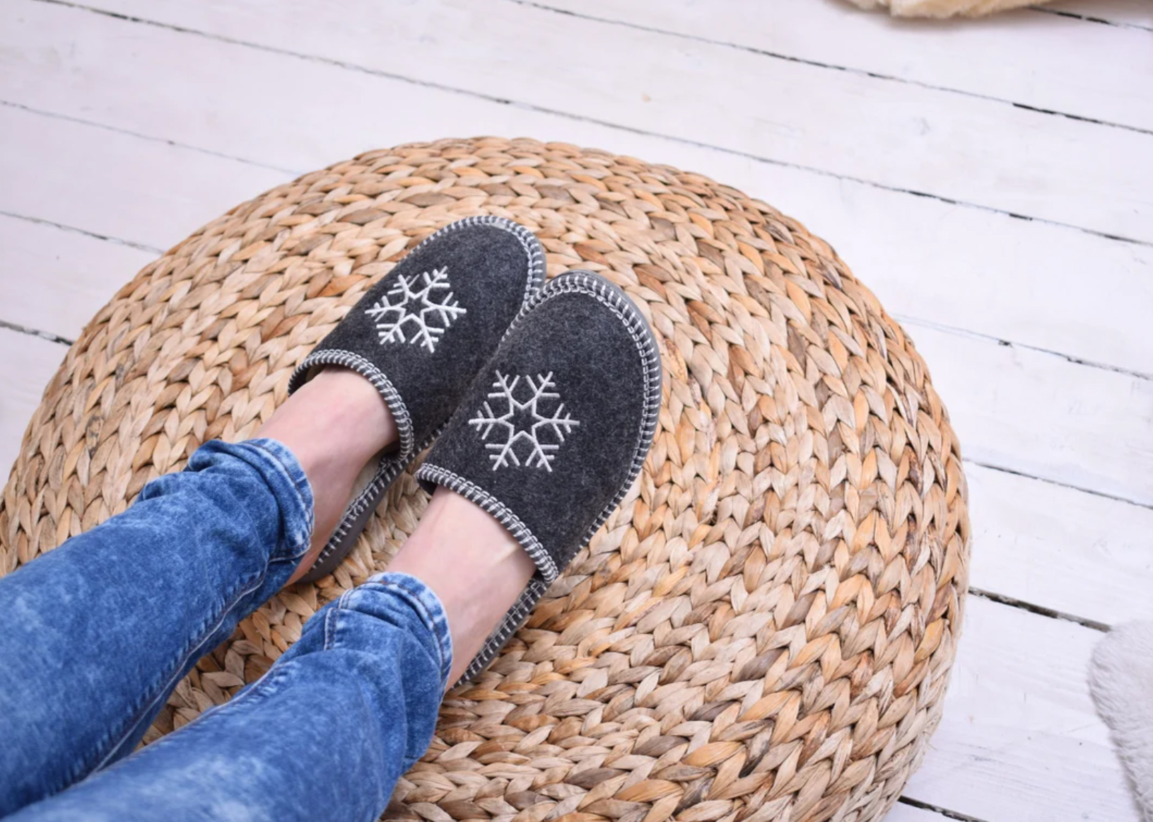 Papuče sú nové, prvotriednej kvality, bez chýb.- Filcový zvršok je ozdobený vyšívanou snežnou vločkou