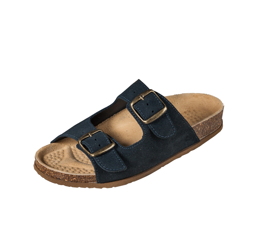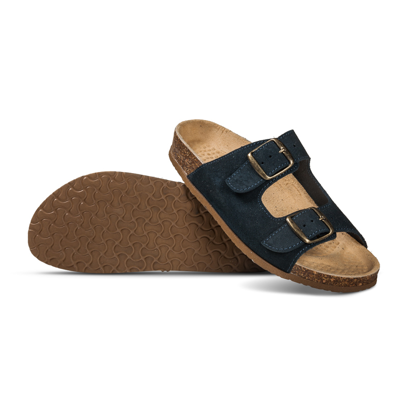Dámska aj pánska obuv na protišmykovej podrážke a korkovej vložke s anatomicky tvarovanou výstelkou. Kožený zvršok z velúrovej usne, prispôsobenie veľkosti pomocou 2 nastaviteľných remienkov. Podošvy, ktoré sú odolné voči olejom, živočíšnym a rastlinným tukom. Odhalené prsty na nohách.
