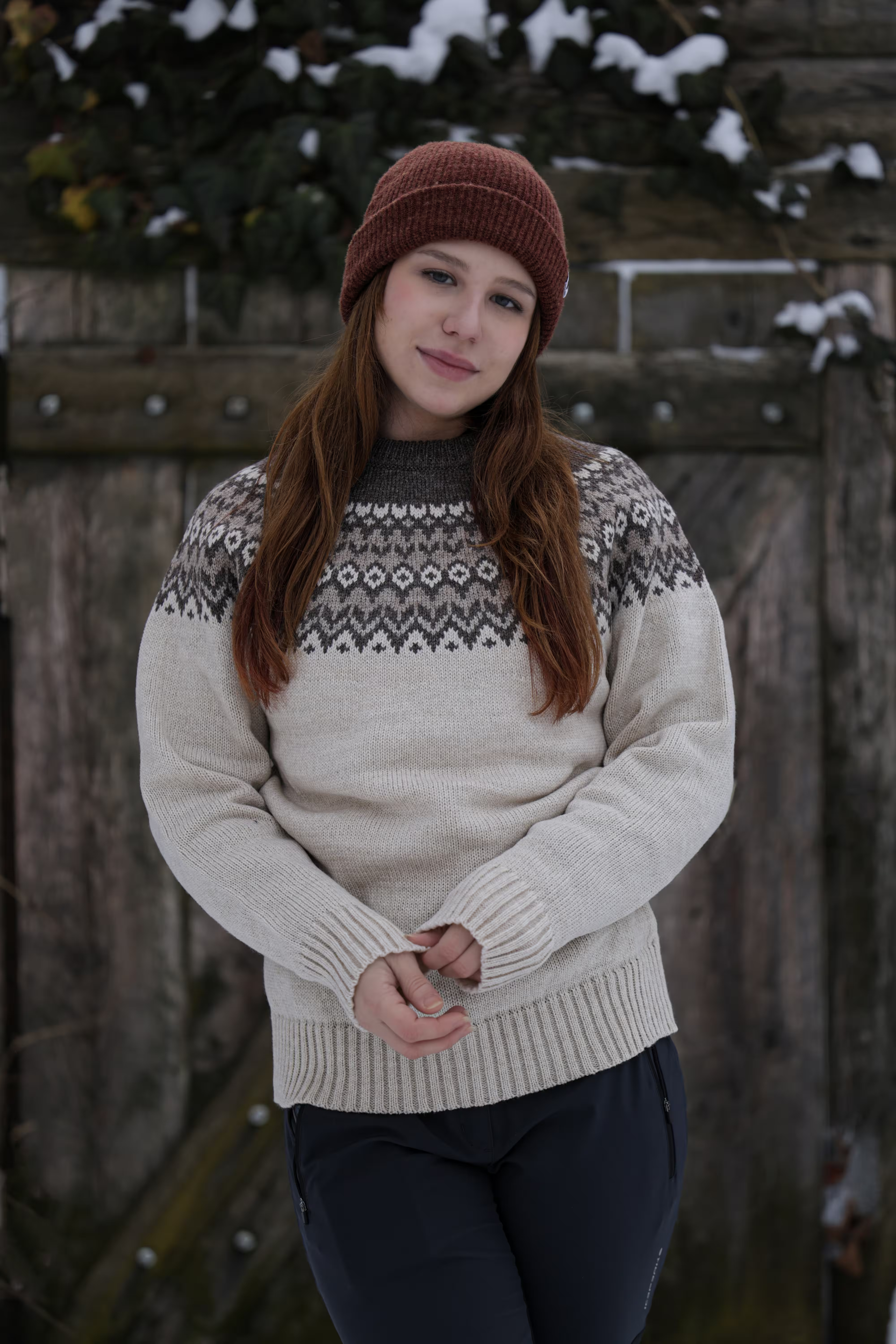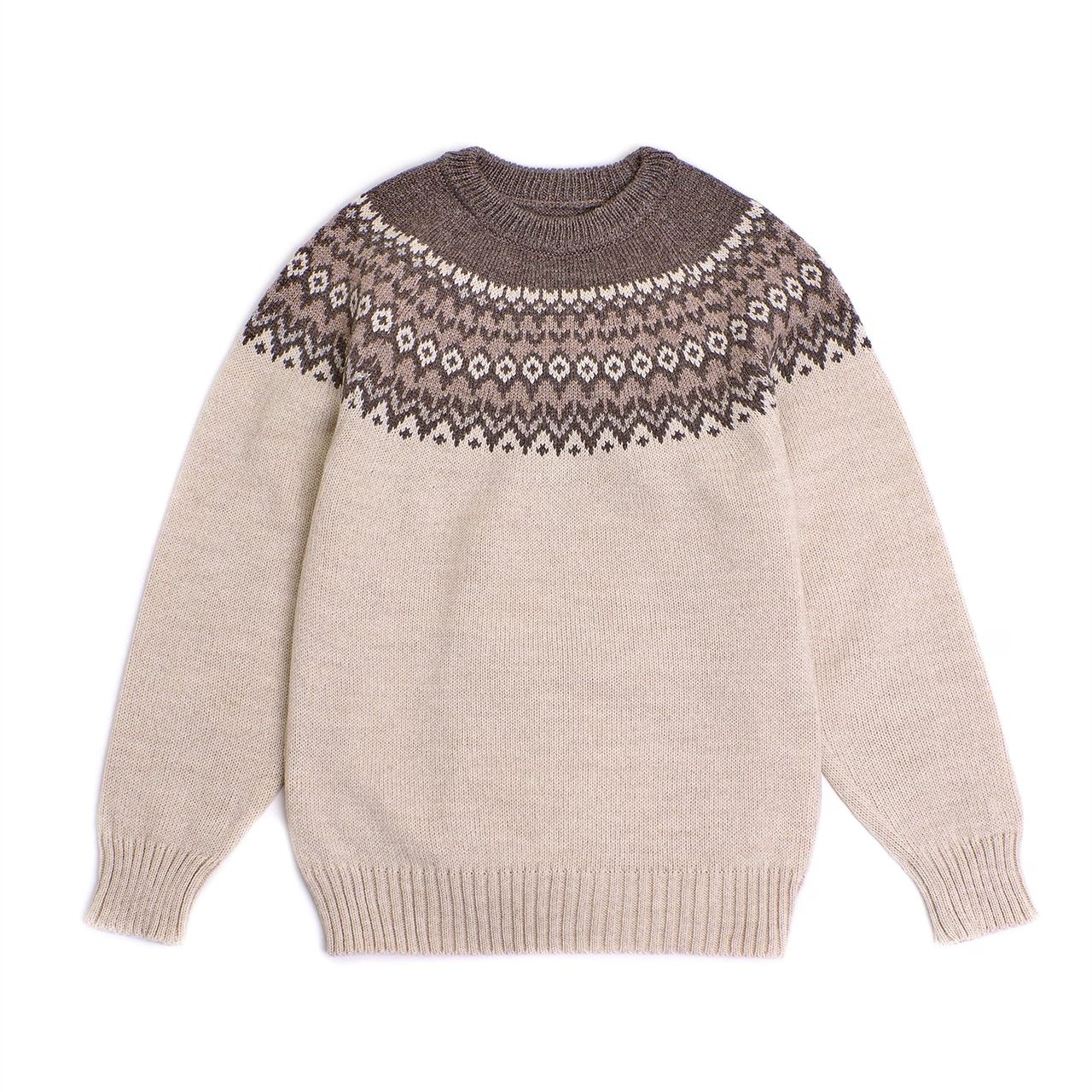 Kvalitný vlnený sveter z 80 % ovčej vlny inšpirovaný severskou tradíciou. Hnedá farebná kombinácia pôsobí teplo, prirodzene a nadčasovo.