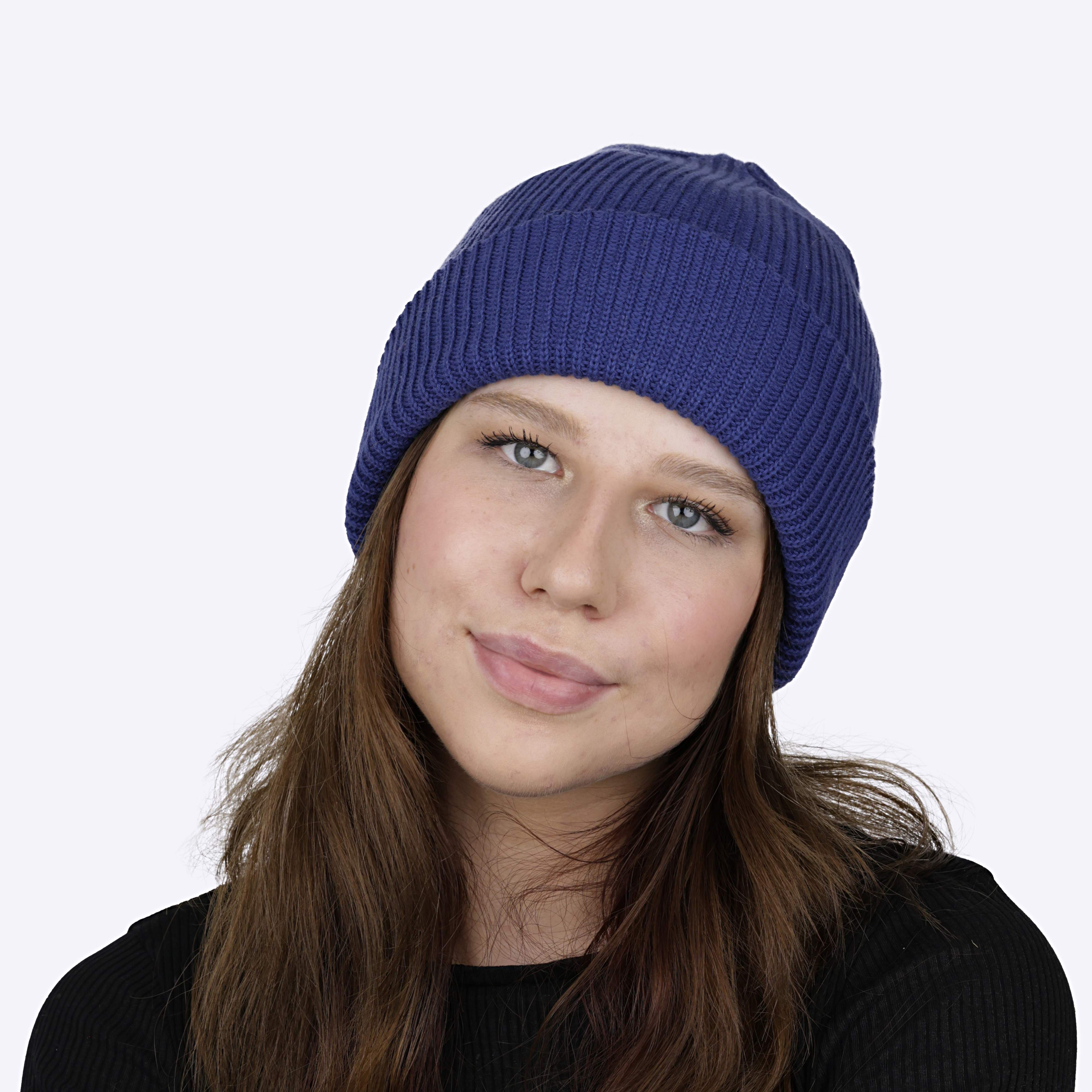 Výnimočne mäkká čiapka v modrej farbe vyrobená zo 100 % bavlny pestovanej s ohľadom na prírodu.