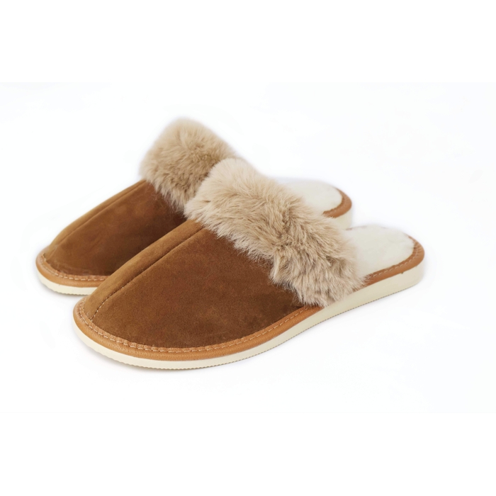 - Domáce papuče zateplené ovčou vlnou, vo farbe ťavia srsť (camel)