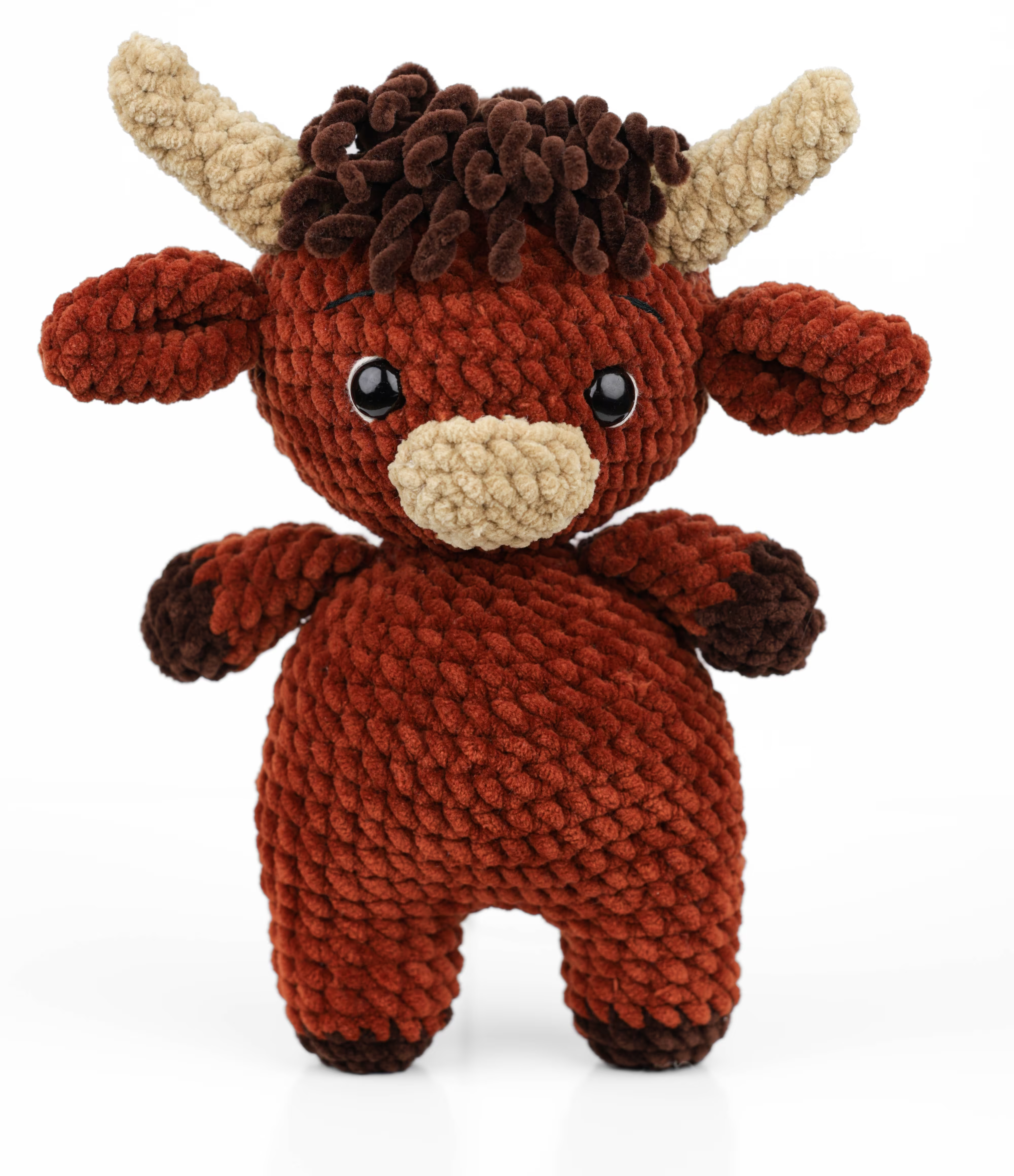 Ručne háčkovaný býček Barnie z recyklovanej priadze. Príjemne hebký na dotyk.